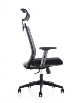 基材: 黑色尼龍加纖椅身,配尼龍?zhí)鼐W(wǎng),帶活動頭枕, 設(shè)有附合人體工程學(xué)的上下調(diào)節(jié)無極檔腰靠·PU扶手面可配2D升降或不升降功能,配原位鎖定或者三檔鎖定底盤,帶座板滑動功能,85#沉口4公分黑色汽桿,∮340黑色尼龍腳∮60MM PU輪黑色輪